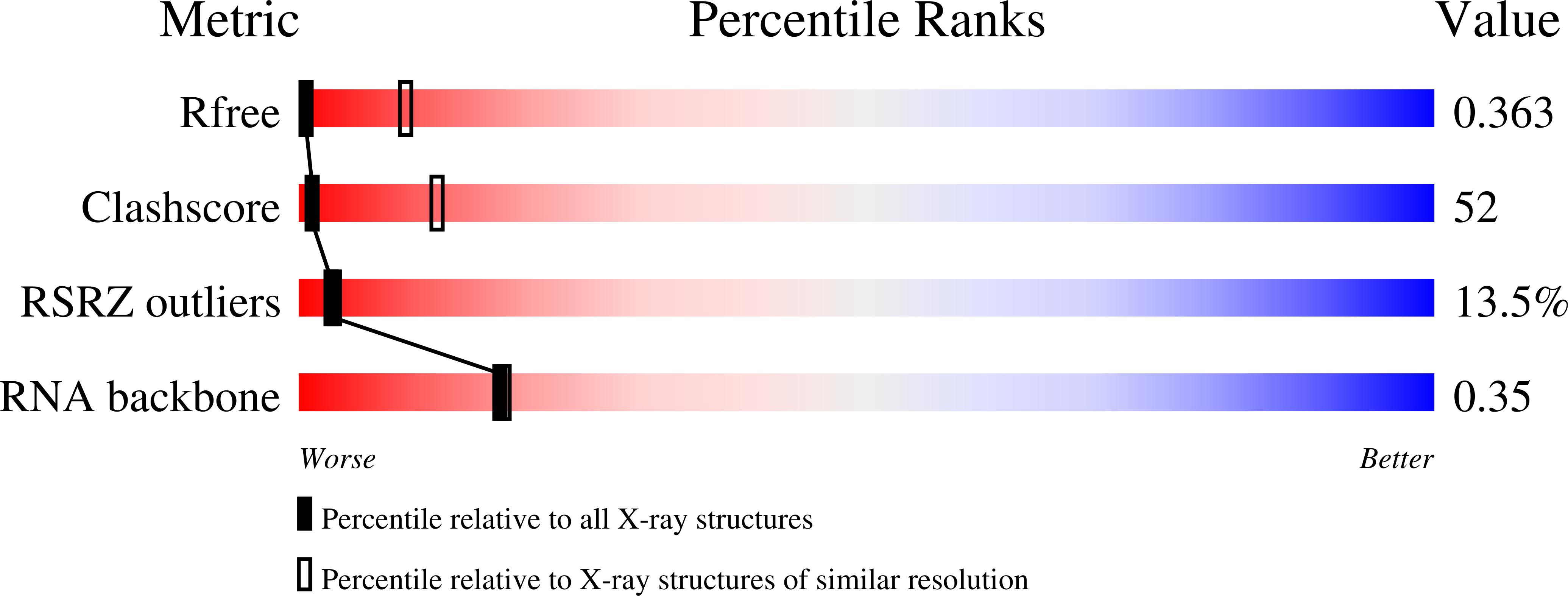 Crystal structure of the RNA subunit of Ribonuclease P. Bacterial A-type.